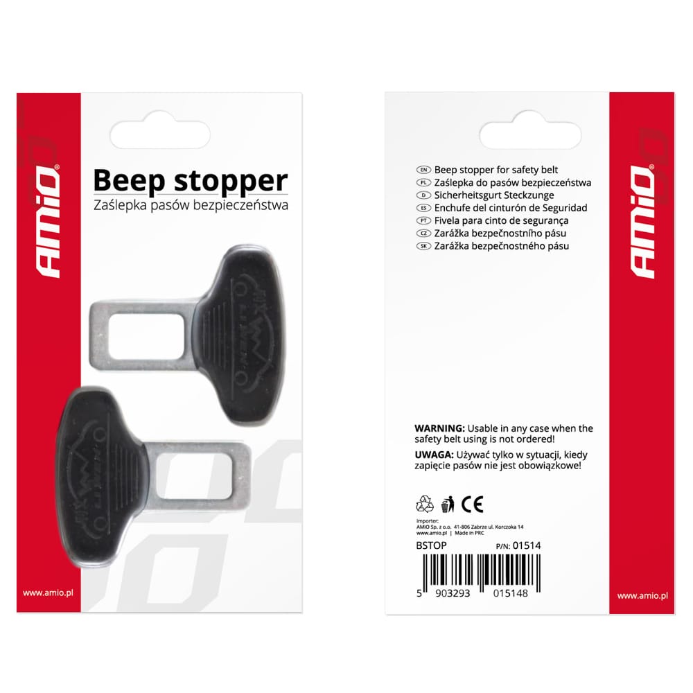 Απενεργοποιητές ζώνης ασφαλείας κατασκευασμένοι από μέταλλο (σίδερο), διαθέτουν αποσπώμενη πλαστική αντιολισθιτική θήκη, που μπαίνει στη λαβή για καλύτερο κράτημα, καθώς και κλείστρο (γλώσσα) με μεγάλη τρύπα. Έχουν universal εφαρμογή για να ταιριάζουν στις περισσότερες ζώνες ασφαλείας και είναι ιδανικοί για οχήματα που διαθέτουν εργοστασιακό ηχητικό alarm (συναγερμό), απενεργοποιώντας τον ήχο (μπιπ-μπιπ) όταν δεν γίνεται χρήση της ζώνης ασφαλείας. Εύκολη και γρήγορη τοποθέτηση.