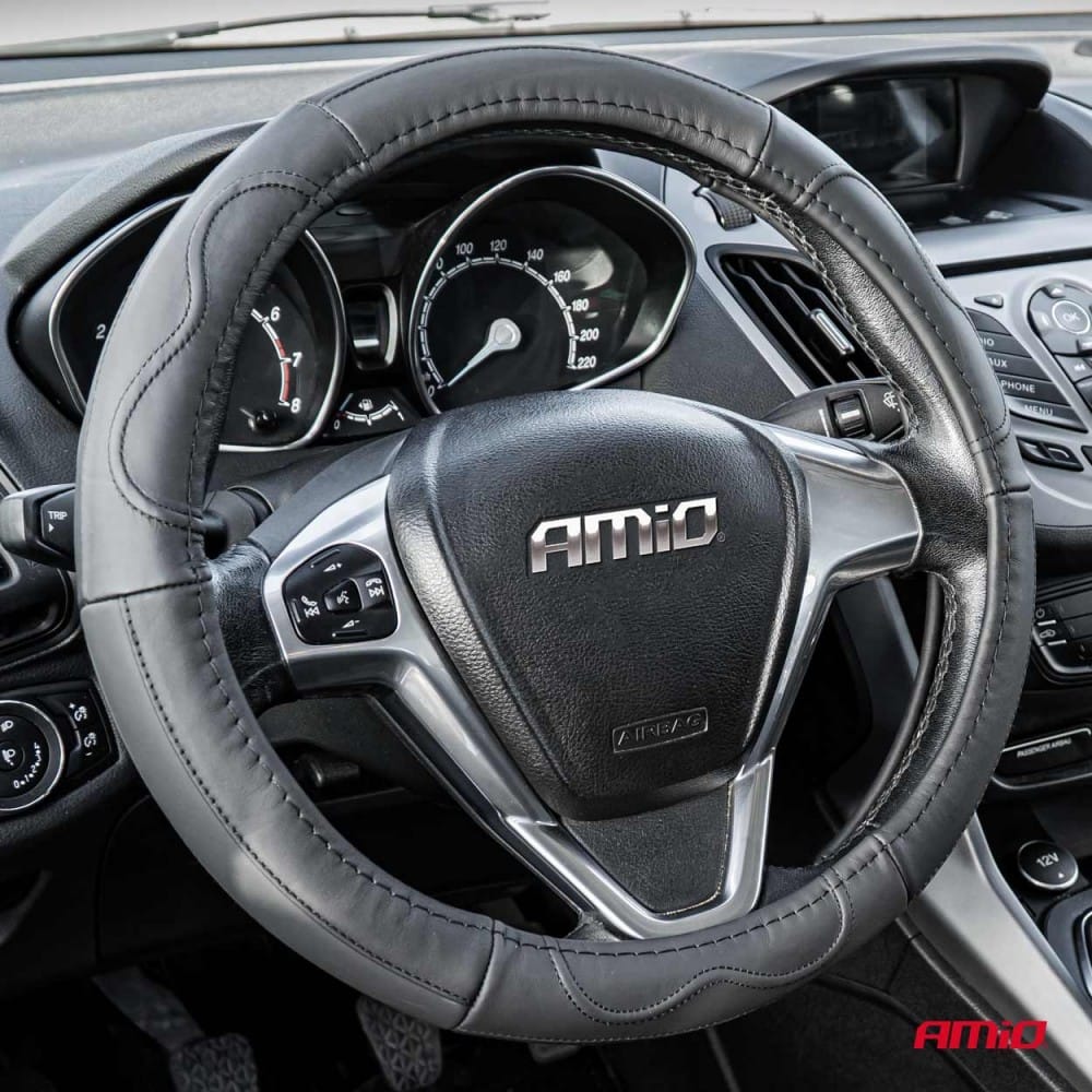 Κάλυμμα τιμονιού από τεχνόδερμα SWC-49-XL μαύρο με μαύρες ραφές (XL) 41-43cm Amio