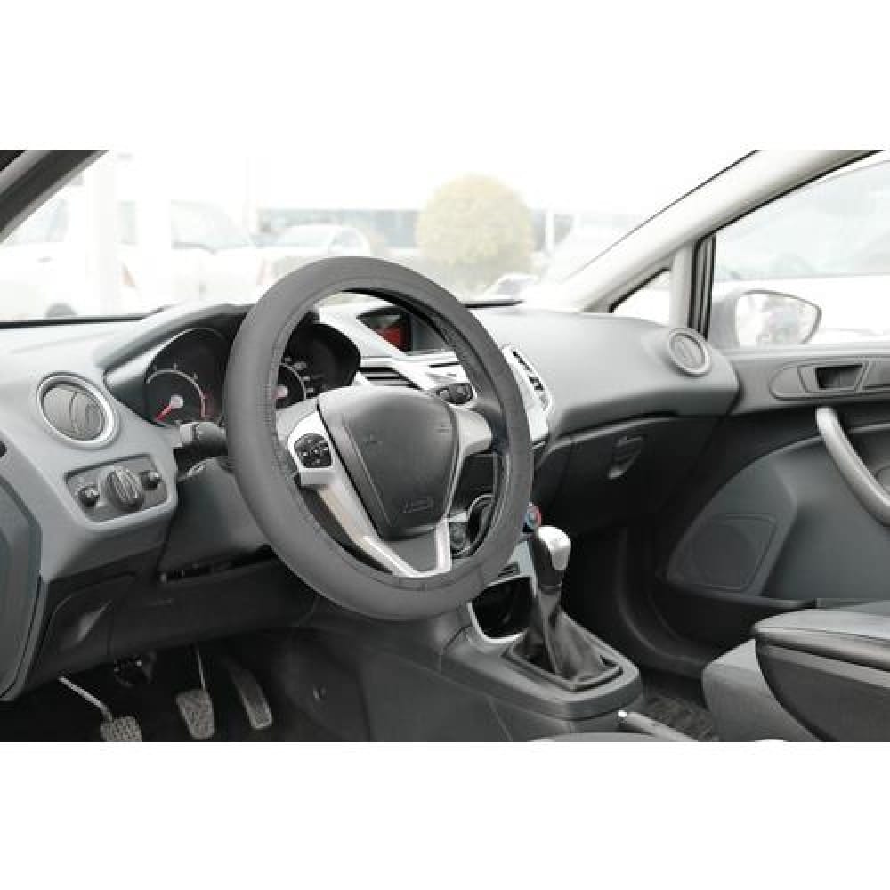 Κάλυμμα τιμονιού κατασκευασμένο με εσωτερική επένδυση νεοπρέν (neoprene) και εξωτερικά με πολυεστερικό ύφασμα (polyester). Η εσωτερική πλευρά του καλύμματος είναι αντιολισθητική για να μπορεί να έχει άριστη εφαρμογή πάνω στο τιμόνι σας είτε έχει ανάγλυφη επιφάνεια, είτε είναι το τιμόνι δερμάτινο. Ιδανική επιλογή για να προστατεύσετε το δερμάτινο τιμόνι σας από εκδορές και τριβή αλλά και για να καλύψετε τις φθορές που έχουν ήδη προκληθεί.